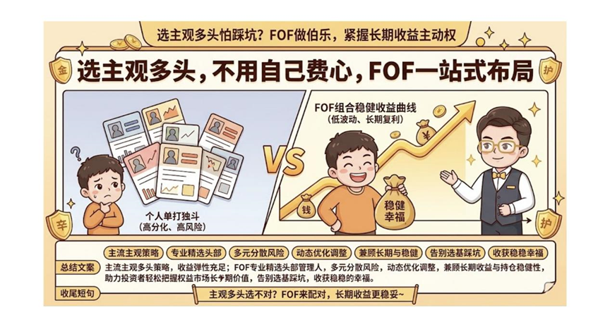 解决方法:主观多头策略“千人千面”,选择管理人本身成为决定成败的关键Alpha,能够合理定位并筛选优秀管理人本身就是一家机构的核心竞争力。具备专业知识和体系的财富管理机构所构建的FOF组合,将不同赛道的佼佼者组合在一起,各取所长,各显神通,通过资产配置具象化的表达,才能尽量不被周期左右,在波动中化被动为主动。